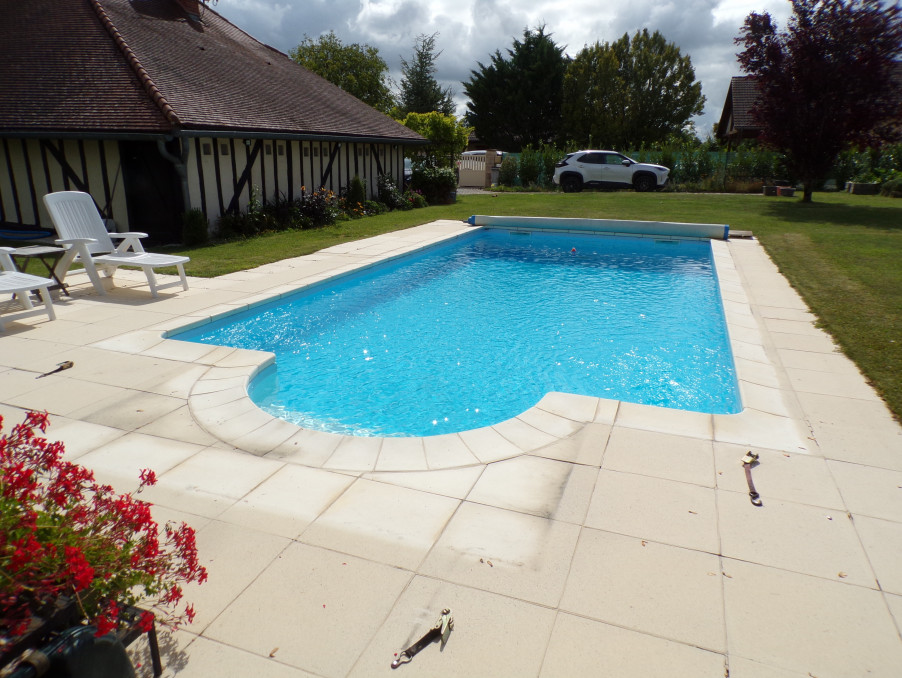 Superbe jardin de 1376 m² avec piscine (4x8m), 2 terrasses, un bucher, un abri de jardin